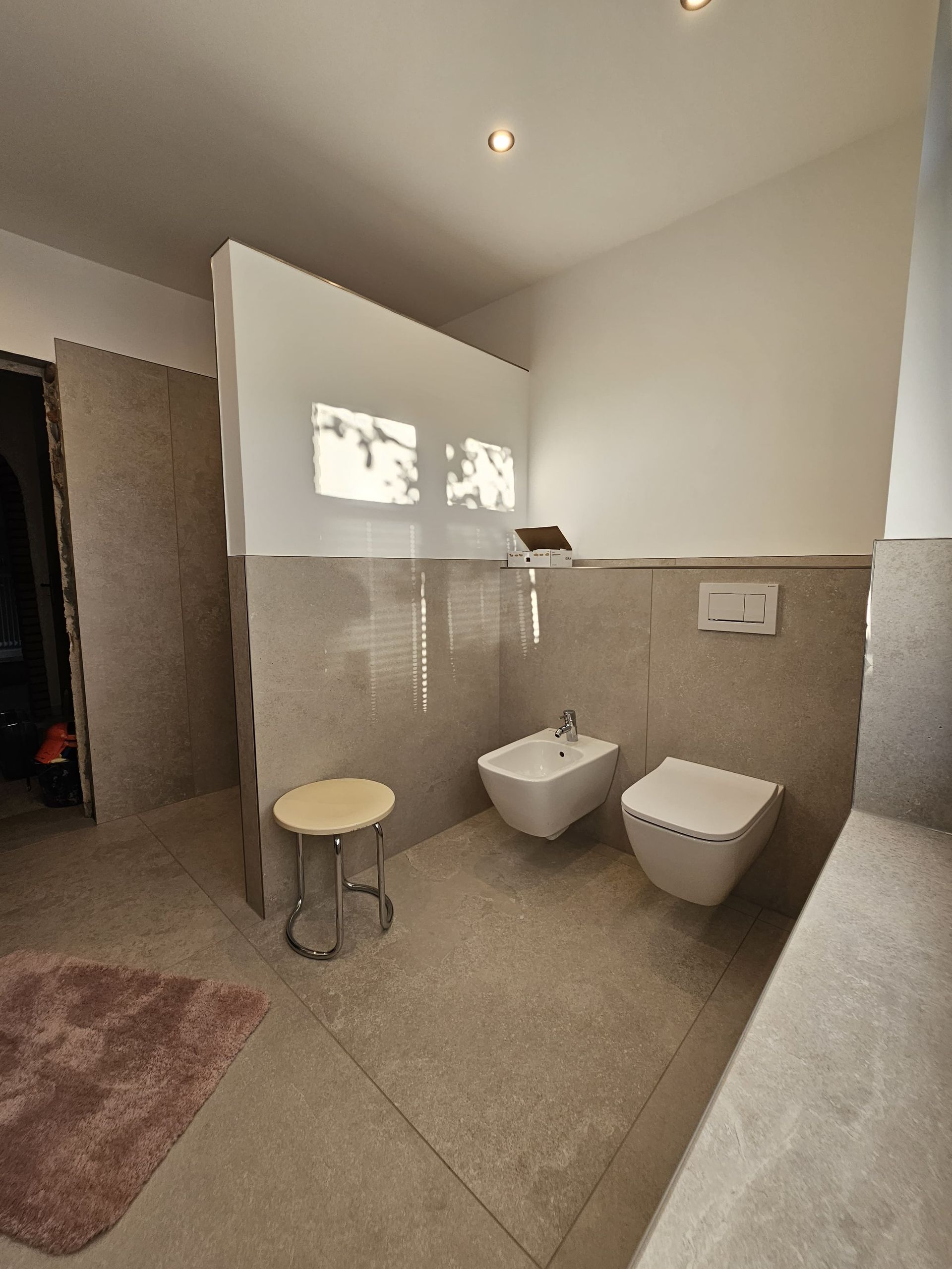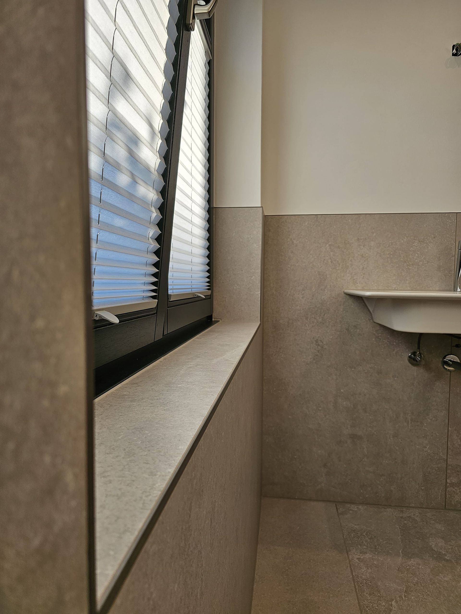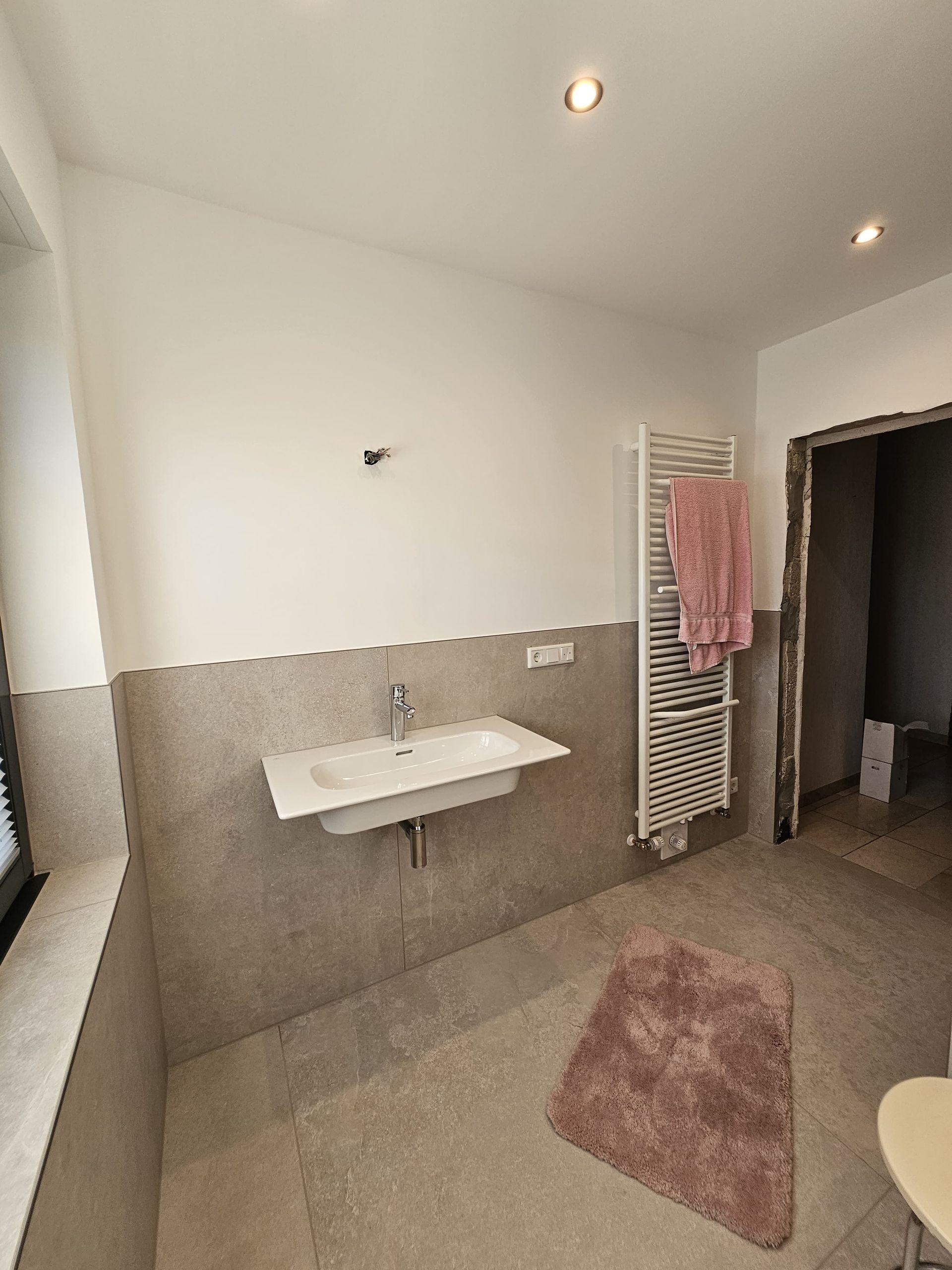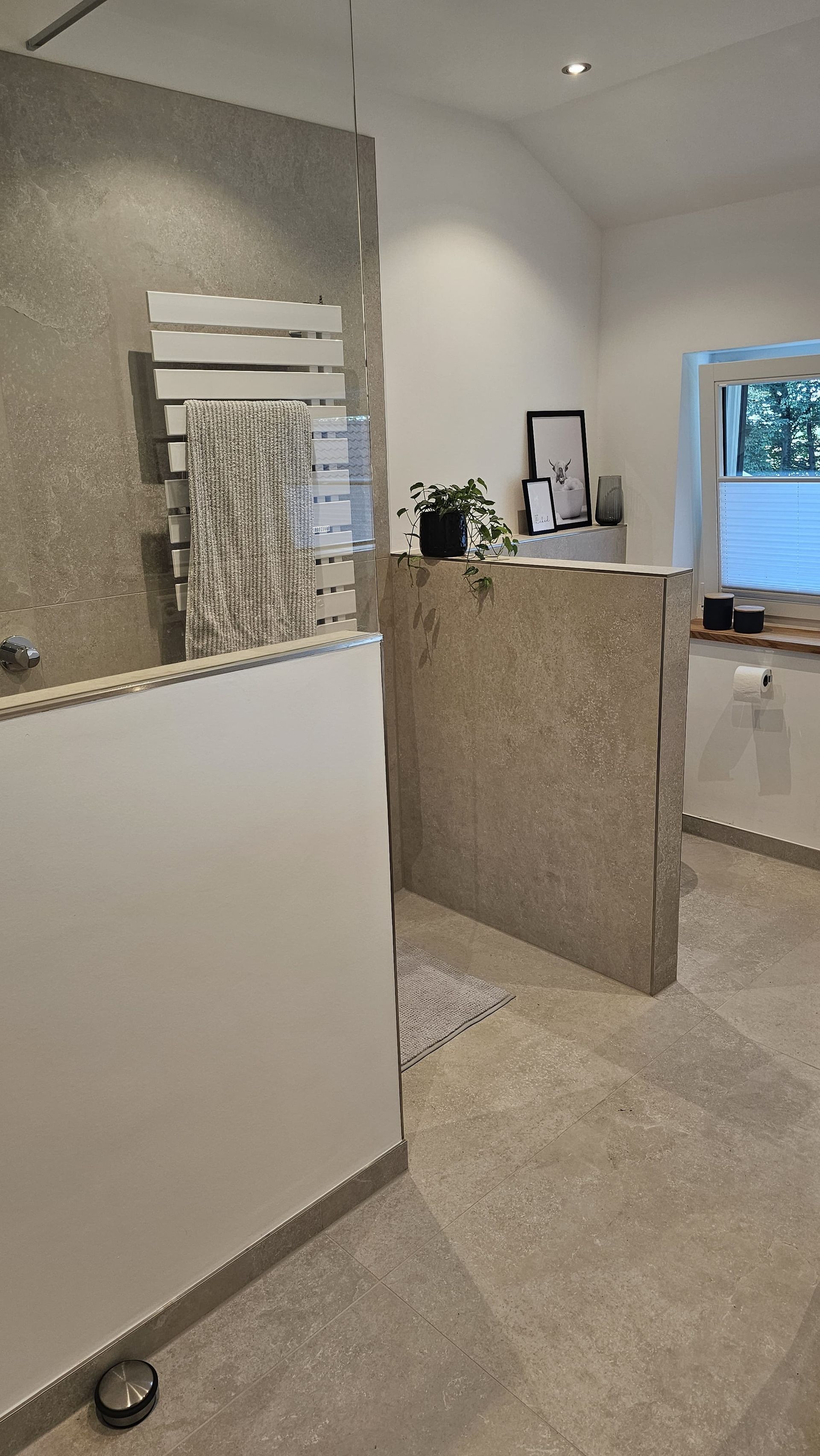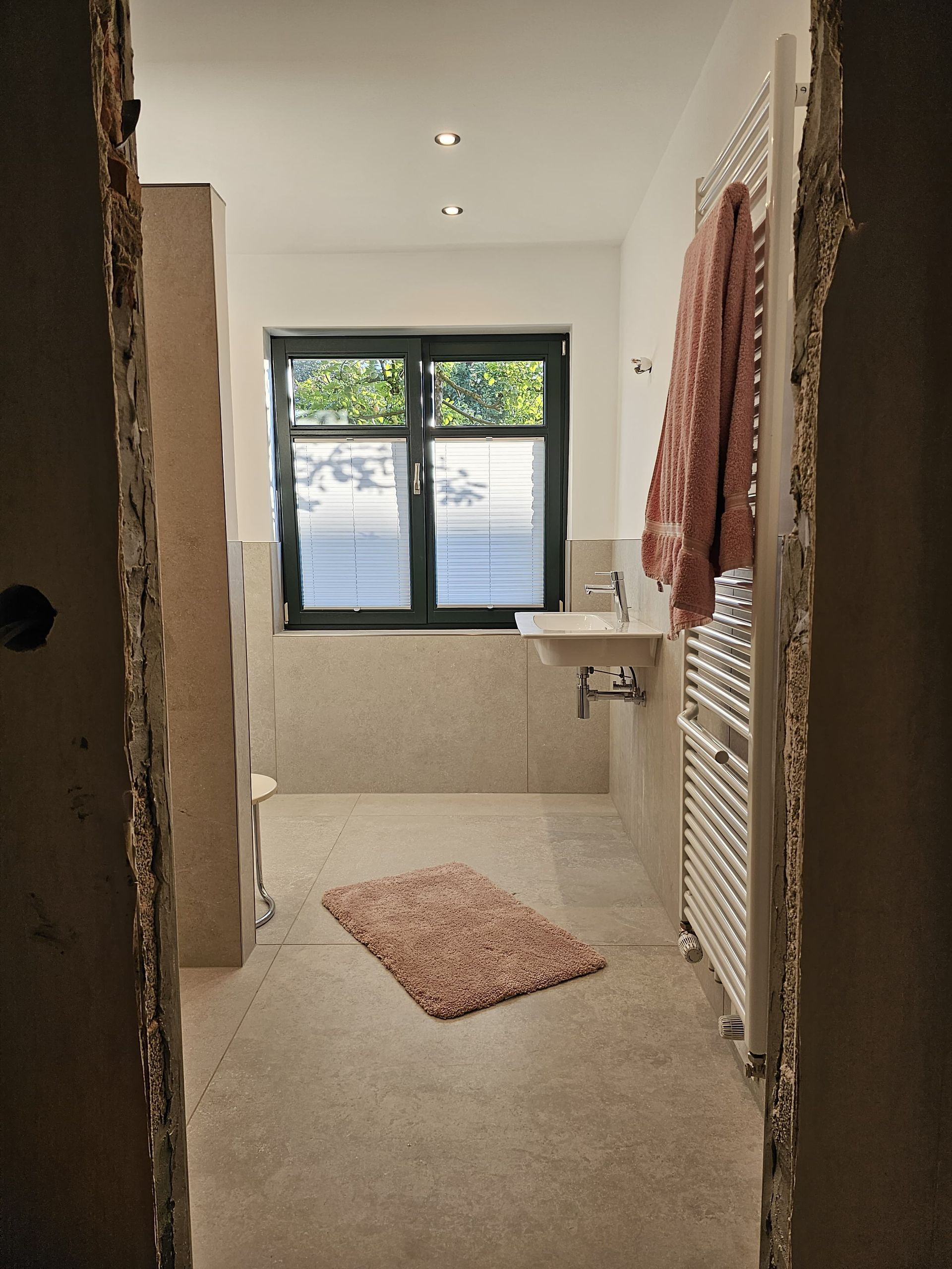 Badsanierung mit XXL Fliesen im Format 120x120 und im Duschbereich 120x240