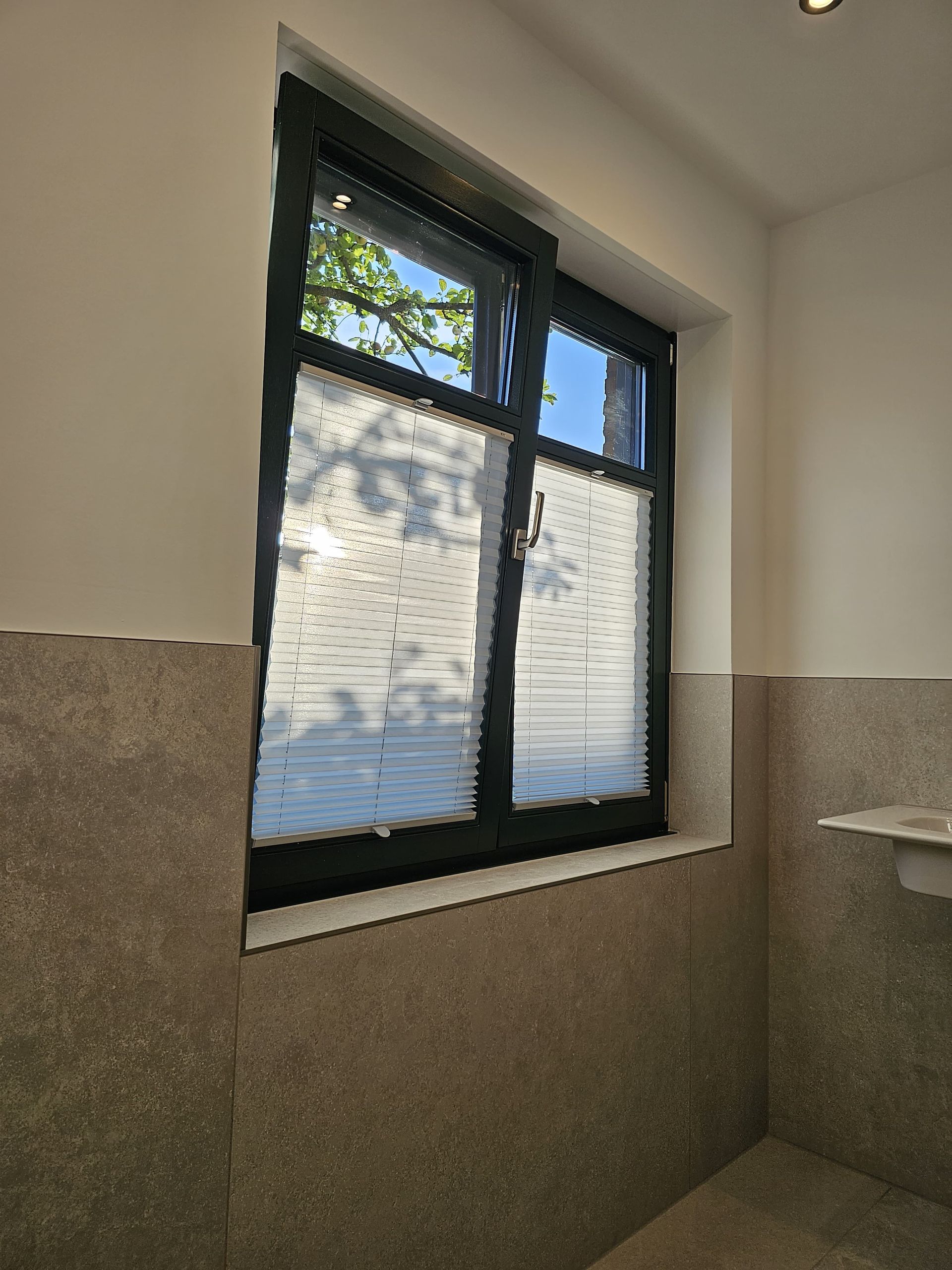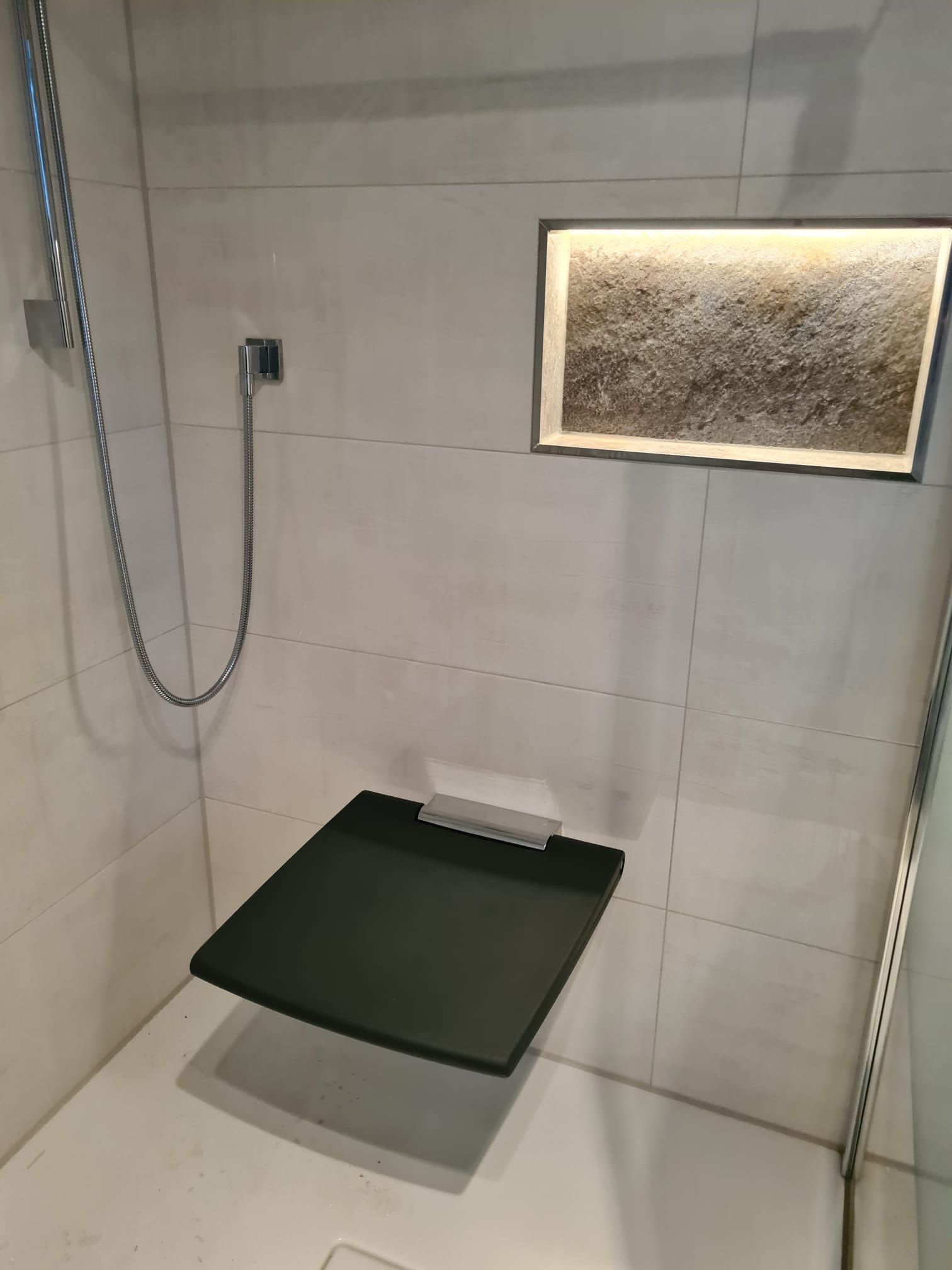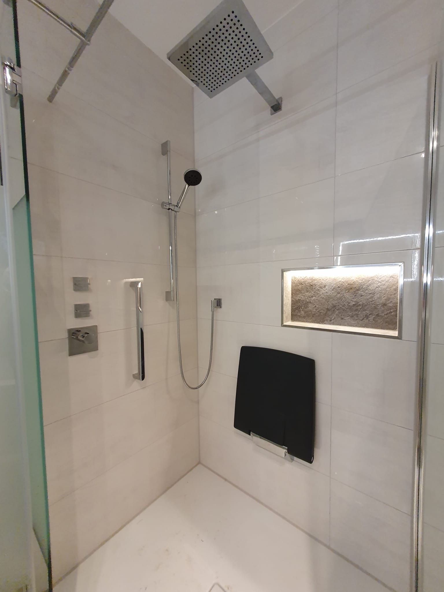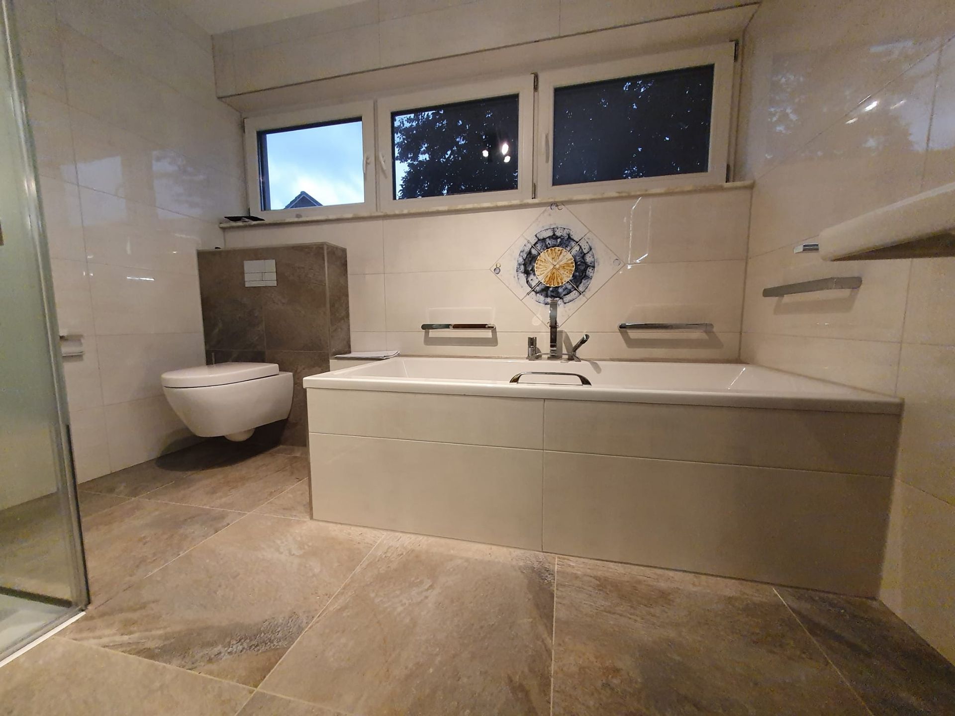 Badsanierung mit XXL Fliesen im Format 120x120 und im Duschbereich 120x240