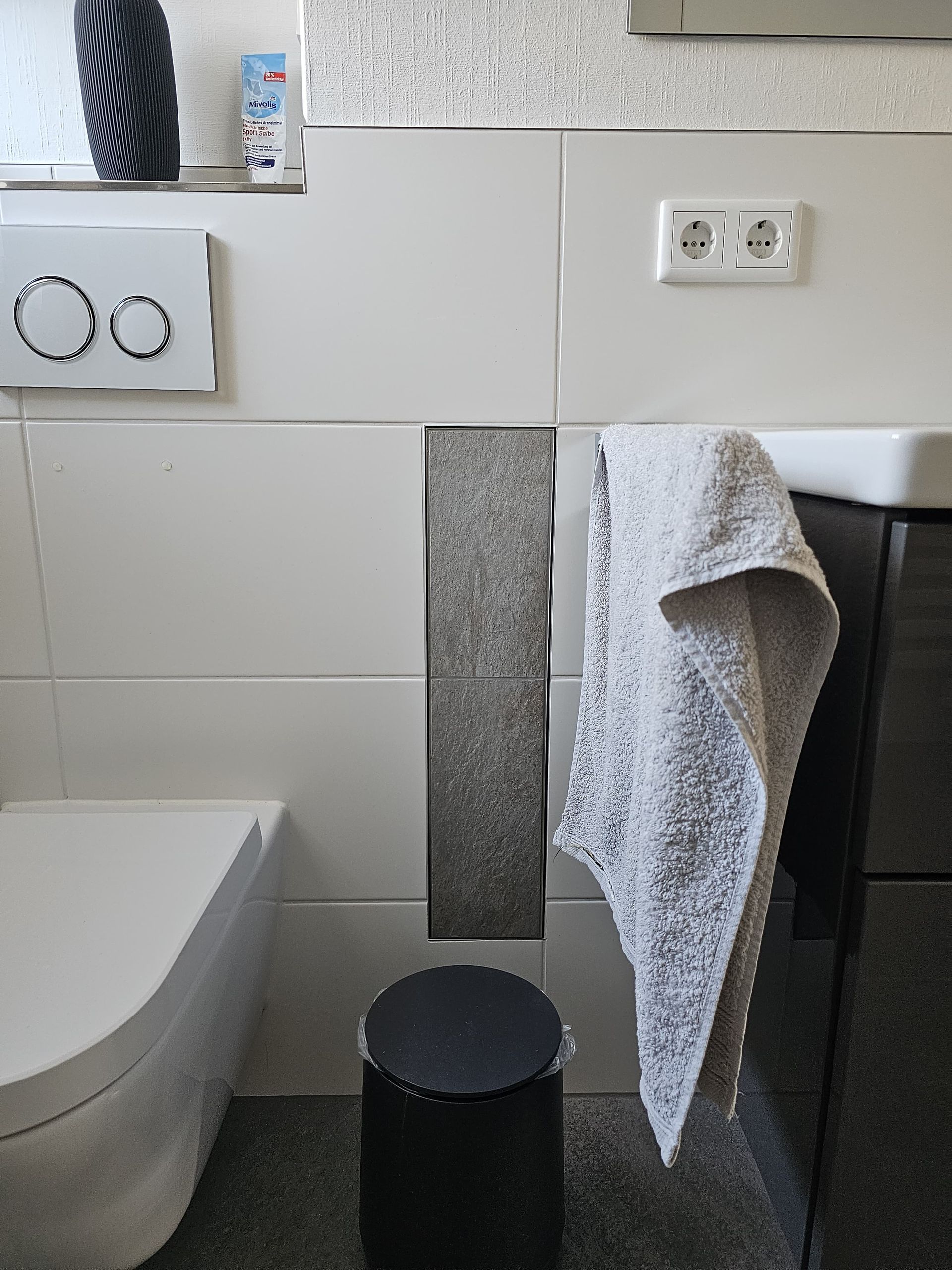 Badsanierung Kombination weiße Wandfliesen im Format 30x60 mit Bodenfliesen 60x60